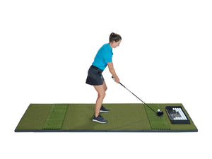 Keep your game under par, and your practice area oversized with the Fiberbuilt Grass Series 10’x4’ Double-Hitting Studio Mat, which accommodates both right- and left-handed players. The authentic Fiberbuilt Grass hitting panels are ultra-durable and proven to perform exactly like real fairway grass. Hit down and through, and avoid turf shock to prevent injuries. Even better, it comes with our 300,000 shot guarantee.
